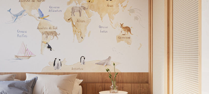 Papeis de Parede com temas lúdicos para deixar os espaços para os pequenos ainda mais lindos.